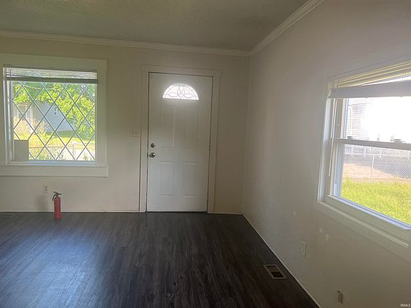 Check out this 2 bedroom, 1 bathroom home located on a quiet corner lot in Evansville. Walking in, you are greeted with a large living room. The two large windows in this room bring in tons of natural light! The eat-in kitchen offers plenty of cabinet storage. Off of the kitchen is one of the bedrooms with plenty of closet space. This room has the potential to also be a great dining room space or office. The laundry and full bathroom are located on the main floor. The bathroom has a shower/tub combo. Upstairs are the two other bedrooms, both with vinyl flooring, ceiling fans, and ample storage space. Outside, you can enjoy a quiet morning on your covered back porch. The large yard space gives you plenty of opportunities for more landscaping or a garden. There is a large storage shed behind the home as well.
