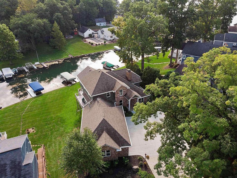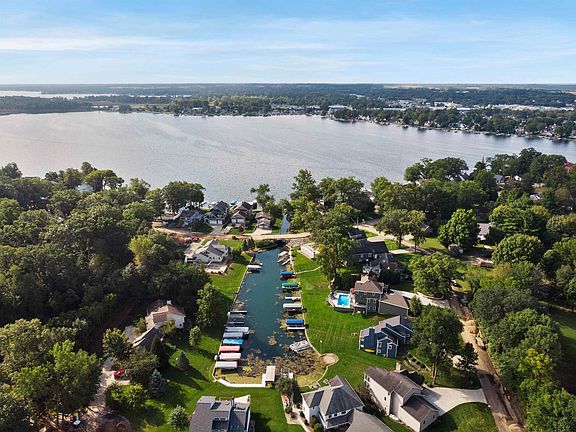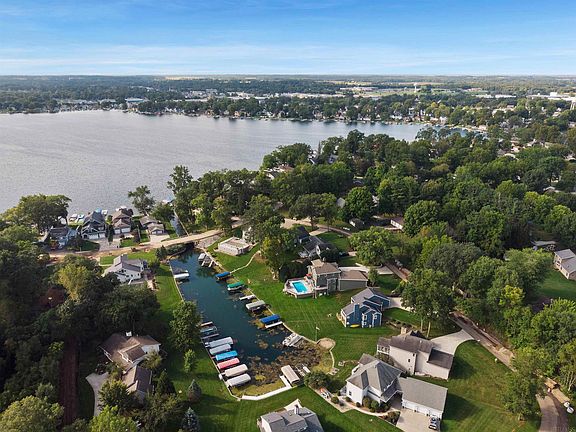 Hello gorgeous! Truly stunning home has it all, from in ground pool & finished walk-out basement to multiple decks & 55’ of channel frontage on Syracuse Lake—luxury living at its finest! Located in quiet & prestigious North Shore Estates, zero through traffic allows for calm & peaceful neighborhood. Brimming w/ quality craftsmanship & highend materials, this 3 story, 5 bedroom, 3.5 bath home has tons of upgrades & impeccably maintained from outside in. Boasting over 3300 sqft there's room for everyone & excellent space for entertaining. Sure to impress from moment you arrive, attractive exterior is mix of brick & shale w/ new driveway & landscaping (2017), all new windows, siding, gutters/leaf guard, roof, retaining walls & all electrical outlets (2018). Attached, heated 3 car garage has epoxy floor & innovative built-in cabinets. Inside front door w/ twin sidelights & transom window you’ll find impressive vaulted foyer w/ chandelier & bright welcoming atmosphere complemented by light neutral color palette & ceramic tile floors (all doors, trim & walls painted 2020). Inviting main floor living room features gas fireplace & wall of waterfront windows. Chef’s delight eat-in kitchen includes abundant custom cabinetry, all new SS appliances, farm sink, fixtures & wine fridge, granite counters & central island w/ seating, plus pantry. Enjoy meals w/ view to walk-out upper deck in dining area next to kitchen. Big den/home office or possible formal dining room, half bath, large laundry w/ build-ins & quartz counter utility sink as well as 1 bedroom completes main level. Upstairs luxurious primary suite has tray ceiling, incredible views, fantastic walk-in closet w/ high end build-ins & spa-like en suite w/ soaking tub, double sink vanity & beautiful walk-in shower. 2 more comfortably sized bedrooms up w/ ample storage throughout & shared full bath w/ new tub. Amazing downstairs spacious enough for rec & home theater in 2nd living w/ gas fireplace, 1 more bedroom & full bath w/ walk-in shower & door to pool deck. All decks are composite & maintenance free—upper deck is perfect for dining al fresco w/ another mid deck down to generous main pool deck w/ room for tiki bar, lounging & relaxing! Pool w/ diving board, new liner & new hand rail will be popular in summer. Steps down to sizable back yard & private pier (#298); buyer gets first dibs on hydraulic boat lift. Great location minutes to lake, near SW trail, walk to park, DT, shops & restaurants. Reach out today!