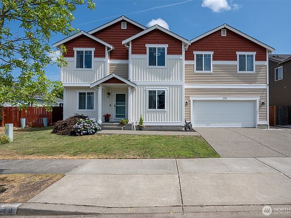 $10,000 SELLER credit towards buy down! Beautifully designed 3400+ sq ft 5-bed, 3.5-bath w/fully fenced 6,200 SF lot in the heart of Orting. The main floor features an ADA bedroom w/ensuite ¾ bath, LG living room, formal dining, and a lovely kitchen perfect for gatherings, plus a spacious laundry room with abundant storage. Upstairs offers 3 bedrooms & 2 full baths— plus 2nd primary suite—along w/a massive family room and second laundry. An oversized driveway and attached garage provide parking for up to 5. Step outside and enjoy walking distance to local restaurants, coffee shops, parks, or explore scenic walking/biking trails that wind through a vibrant community. Great for the extended household/multigenerational living/rental income.