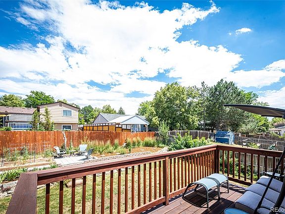 Love open floor plans Welcome to this turn-key home with low utilities, a privacy-fenced yard and no HOA. Delight in the open floor plan providing 3 bedrooms, 2 bathrooms and 2 separate spacious living spaces! Enjoy the benefits of an established neighborhood and mature trees with a fantastically updated home! The kitchen features resurfaced cabinets, easy-care LVP flooring, pantry, newer stove, microwave, and dishwasher. The sunny dining room has a sliding door to large deck and overlooks the large, bright living room. Upstairs also provides a spacious and bright main bedroom with attached full bath and walk-in closet, as well as a 2nd bedroom with walk-in closet. The lower level offers great recreational space with a brick hearth wood burning fireplace, perfect for cozying up on brisk winter nights! Appreciate the additional enormous bedroom and updated 3/4 bathroom. Enjoy the tranquil privacy-fenced backyard with terraced garden beds and a water-efficient Bluetooth sprinkler system with six zones. This yard is perfect for entertaining and relaxing on the patio amidst the garden paths! Amazing Energy Efficient features include OWNED Solar Panels and dual-pane, low-E windows that tilt-in for easy cleaning. The average summer utility bills for this home (including gas and electric) are less than $50/month! Smart features include Nest thermostat, Ring doorbell, keyless entry with ADT wireless security panel featuring Z-Wave technology. Other updates include newer furnace, interior paint, flooring, electrical panel, new switches throughout, and all new kid-friendly tamper-resistant outlets. Less than 1 mile from the 24-hour gate for Buckley Space Force Base, close to E-470, Shopping and only 15 minutes from the Denver Tech Center! With no HOA and reasonable taxes, this lovingly-updated home is a fantastic and affordable opportunity. Public Open House Saturday, Sept 10th from 11-2. Welcome Home!