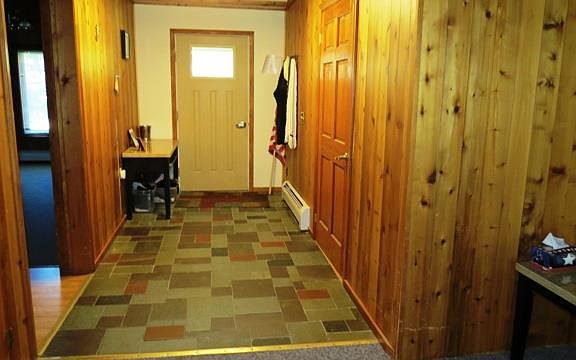 This exceptional home offers one level living and is located in an area that has an excellent vacation rental potential. Its living room is spacious with knotty pine interior finish, a vaulted ceiling and a centerpiece attractive stone fireplace adding both ambiance and warmth. Splendid hardwood cabinets adorn the Kitchen which is open to a dining area that both family and guests will enjoy. There is a private Sunroom overlooking a spacious backyard ideal for outside entertaining or that is quiet enough for simply relaxing. A bonus room in the basement has been framed and can be easily finished if additional space is needed. Attached 2 Car Garage with room for vehicles or recreational toys.