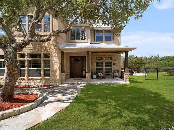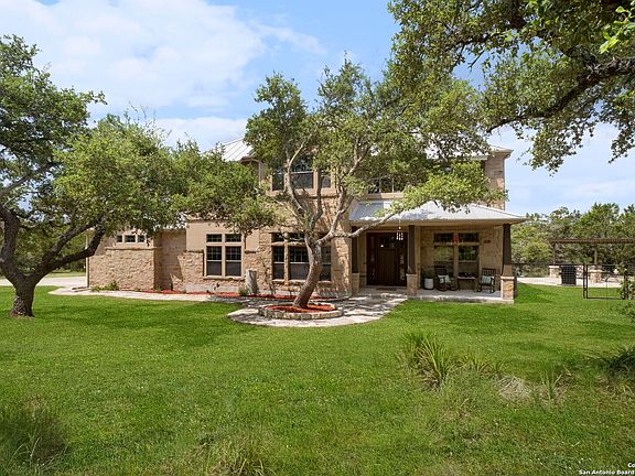 **Seller open to 2-1 Buy Down options** Bookend your days with breathtaking Sunrise and Sunset views on this acreage homesite in the desirable neighborhood of Mystic Shores. You'll love the private, wooded 3.34 acres, with oak trees and abundant wildlife. With approx.. 1 acre fenced and a fenced garden, you'll be able to let out your dogs and also enjoy a deer proof garden. A front and back sitting porch with tongue in groove cedar soffits beckon you to sit, stay a while, and relish in the calm serenity of surrounding nature. This gorgeous hill Country Craftsman house was built by premier builder Jimmy Jacobs, with solid wood custom cabinets, solid 8' wood doors & wood beams throughout. There's plenty of room for family in this almost 3500 square feet home with 4 Bedroom, 4 Baths, 2 Offices, and an oversized 3 car garage. Game Room could be converted back to formal LR or even a DR. Enjoy cooking together in the chef-inspired kitchen with Jenn Air 6 burner gas stove, Jenn Air wine fridge, drawer microwave, Bosch dishwasher and large pantry. Comes with 1 year America's Preferred Home Warranty! Mystic Shores offers excellent amenities with 30-acre lake front park, waterfront access for both Canyon Lake and the Guadalupe River, two pools, a community center with a fitness area and kitchen, 200-acre nature preserve along the Guadalupe River, tennis and pickleball courts, basketball, volleyball, playground, two large pavilions, covered picnic tables with grills by the lake. Just minutes from Canyon Lake and multiple boat ramps.