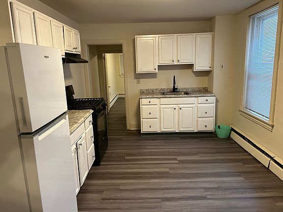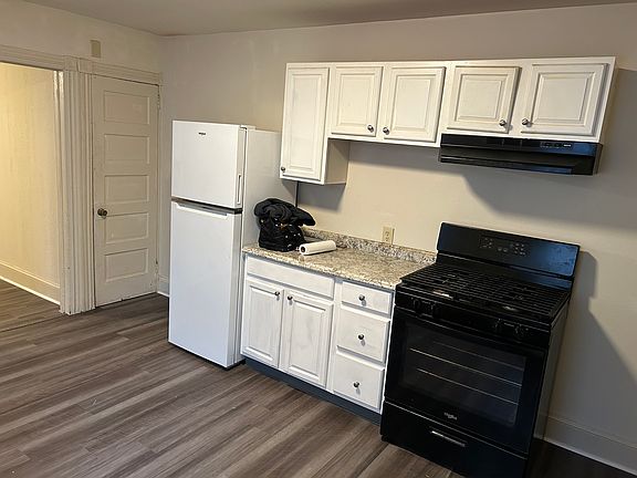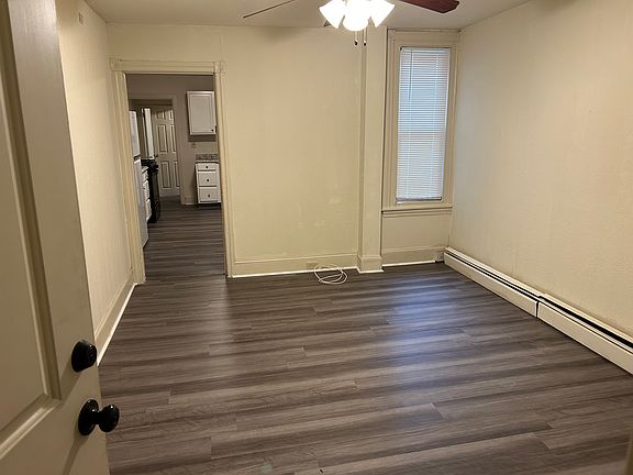 Open to applicants with Housing Choice Vouchers. This recently renovated 1st floor of a duplex has new vinyl flooring and paint throughout. New washer and dryer are in basement. Six windows are new to help keep it warm. The stove and refrigerator are less than 2 yrs old. This unit has 2 bedrooms with good natural light. The kitchen is large enough for a small dining table. The bathroom has a tiled shower. The unit also has access to a large basement for storage needs. The rear door leads to a nice size covered patio and shaded yard. Walk out the backyard and up the steps to a dedicated asphalt parking spot.