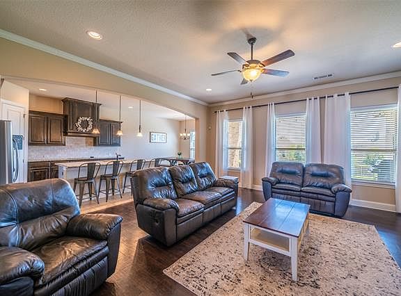 Beautiful John Houston Custom Home! Texanna Ranch with vast open floor plan concept, all bedrooms on main level with a spacious media room and half bath upstairs. Inviting living room and kitchen combination is perfect for families and entertaining. The master bedroom features dual sinks, spacious walk in closet and garden tub. Harmonious living room has large, sunny windows looking out onto the expansive backyard. Beautiful gated community with playground and private pond for fishing.