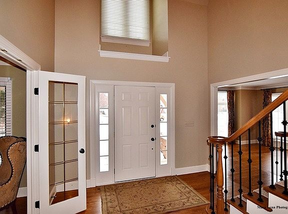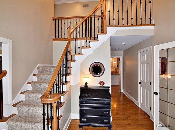 Beautiful home~Updated kitchen,master bath,powder room & hall bath.Formal L/R & D/R~Hardwood throughout entire first floor.FR w/brick fireplace and"box beamed"ceiling.2 story elegant foyer~staircase w/metal balusters~Large master w/tray ceiling~finished basement with play and rec rooms.1st floor den w/built ins & overlooks front porch, Newer deck, screened gazebo & play set. Private yard. Updated lighting & hardware