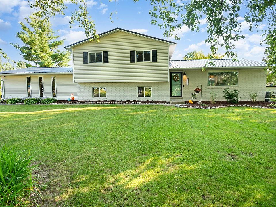 Beautifully renovated in highly desirable Kawkawlin Twp! This move in ready quad level features 3 bedrooms (with a potential 4th used as an office) and 1.5 baths. The main floor was gutted and boasts a completely open concept living space. The kitchen features high quality floor to ceiling white cabinetry, soft close doors and drawers, all pull out storage shelves, granite counters, stainless steel appliances, subway tile backsplash, an imported fireclay farm sink, and a spacious island with seating for 4 overlooking the living and dining space. Lifetime warranty luxury vinyl plank through the main floor and lower living area. Other updates include bedroom carpeting 2022, metal roof gutters soffit & facia 2019, central air 2022, exterior doors 2021, interior doors and trim 2021, pole barn cement 2022, landscaping 2019. You will appreciate the spacious back deck with pergola overlooking the large country sized lot. Plenty of storage to be found with a 2 car attached garage, 24x32 pole barn, shed, and a neat and tidy basement. Agent owned.
