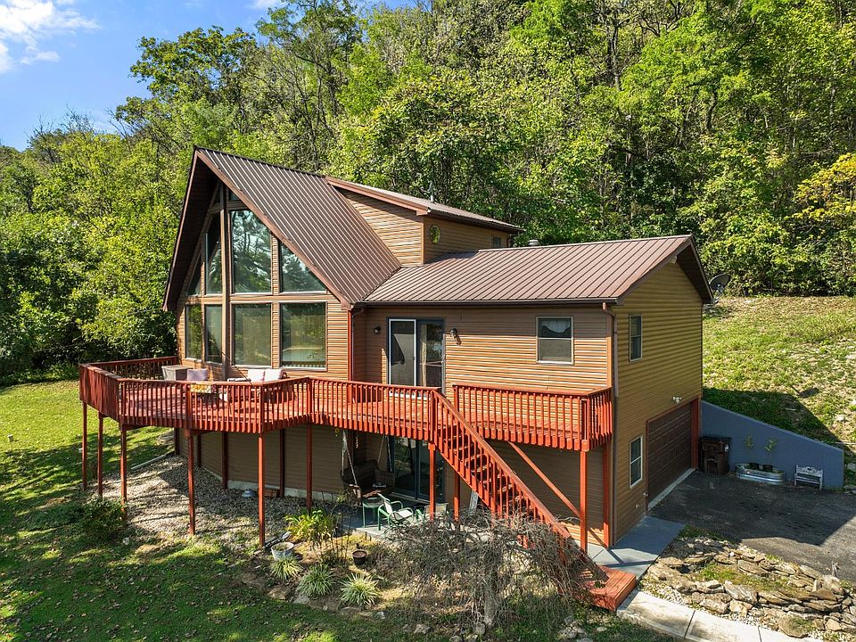 Welcome to this one-of-a-kind custom-built retreat overlooking the beautiful Ohio River. Whether you're looking for a peaceful weekend getaway or a year-round residence, this property offers the perfect blend of comfort, space, and natural beauty. Step inside to find an open floor plan filled with natural light, featuring 3 bedrooms and 2 full baths. The spacious layout flows seamlessly, making it ideal for both entertaining and everyday living. Enjoy your mornings or evenings on the expansive front deck, taking in the serene views of the river. The walk-out basement offers endless possibilitiescreate a recreation room, home gym, workshop, or extra living space to suit your lifestyle. Outside, you'll appreciate both a 2-car attached garage and a 2-car detached garage, providing ample space for vehicles, storage, or hobbies.
