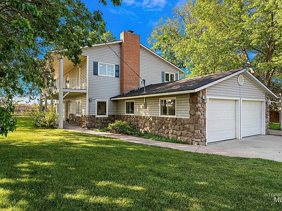 Welcome home to this spacious 4-bedroom, 2.5-bath charmer on a generous 3/4-acre large lot just 5 minutes from the freeway for an easy commute, but worlds away from the hustle. This thoughtfully updated home with a new roof (2024) and a freshly painted interior, is move-in ready and full of potential. Inside, you'll love the large kitchen with a center island and ample counter space, a separate dinning room, and two living rooms that are all perfect for gathering, cooking, and entertaining. Outside, enjoy Idaho’s seasons from the covered front porches or unwind with friends and family on the expansive covered back deck and patio with a built in grill, ideal for outdoor dining and backyard BBQs. NO HOA! That means there is RV parking possibilities, you can raise chickens, or create the backyard of your dreams. Whether you're looking for more land, more freedom, or simply more Idaho, this home checks all the boxes.