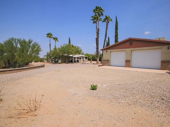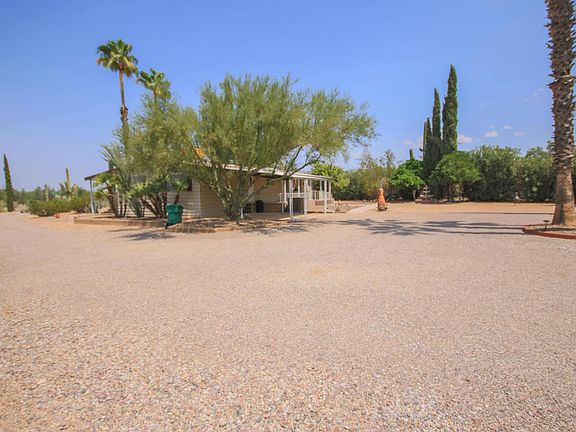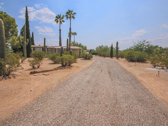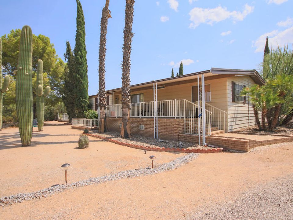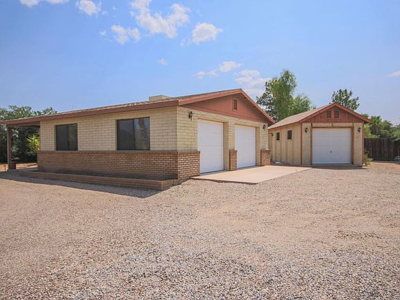 Lots to offer on this 1 acre parcel. The main home features 3 bedrooms and 2 bathrooms with a cute kitchen, double ovens, all appliances, ceiling fans, gas fireplace, large laundry room, pantry, split floor plan, vaulted ceilings and formal dining area more. The master is large with separate shower and garden tub. The Exterior features a permitted, detached 2 car garage with an attached guest quarters / studio with small kitchenette and 3/4 bathroom & walk in closet ( Swamp cooler in Garage and Portable AC in guest quarters ). Other features also include another detached 1 car garage, 2 car carport, Covered patios, multiple mature citrus trees, very secluded, and low care yard. Come see all the features this wonderful home has to offer!