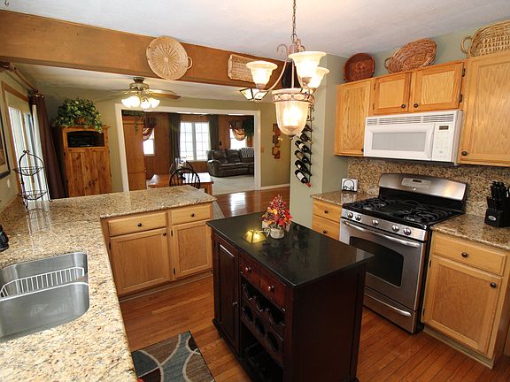 Beautiful lakefront home with lots of natural light. Updated kitchen features granite counter tops and custom accent lighting. The main level has open concept and Oak hardwood flooring. There is a large wrap around deck that overlooks tasteful landscaping and a private bay to the lake. Plenty of parking in the large, heated 3 car garage with bonus room above! Seller says you can duck hunt off end of peninsula (See survey). Lot's of summer and winter activities on the lake. Don't miss out on this one of a kind!