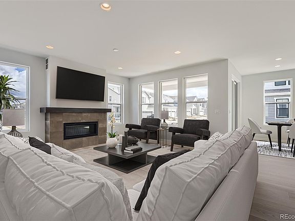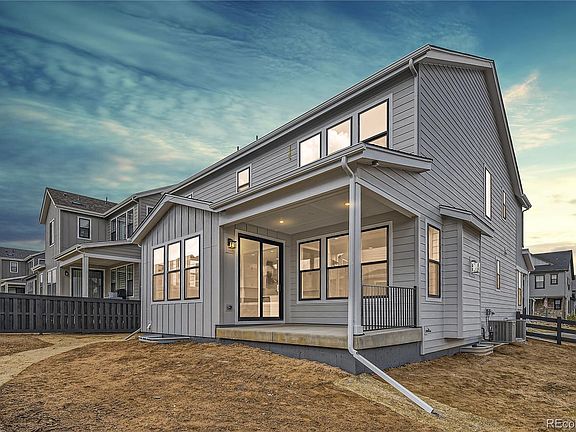Beautiful two-story 4 bedroom, 3.5 bath home on a corner lot with loft, study, fireplace, covered patio and 3-bay tandem garage located in the desirable Solstice Community by Shea Homes. Solstice is surrounded by Chatfield State Park on 3 sides of the community and acreage parcels on the 4th side.  Design finishes include luxury plank CoreTec Pro Kent Oak wood-style flooring and stairs, tile floors at the bath and laundry rooms, AZT Denali quartz kitchen counters with a backsplash, AZT 12x24 Reside Brown half height tile fireplace surround, and Yorktowne Shaw Sea Salt and Dockside cabinetry.  The Mirabelle Metropolitan Districts provide various services to the property and in addition to the estimated taxes, a $40 per month operations fee is imposed.