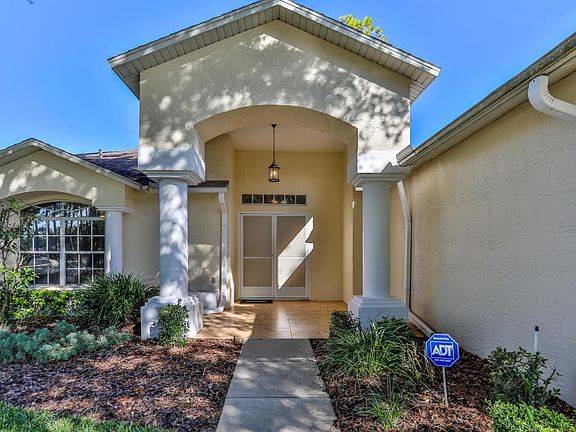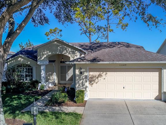 Located in one of the areas finest age-restricted, gated, golf communities. Vaulted ceilings impressive great-room, Split plan 1 guest room w/built in bookcases and desk (large walk in closet). Master bedroom sliders to lanai, 2 walk in closets, mstr bath dual sinks, walk in shower. Kitchen w/Granite, great work area, pantry, sliders to enclosed/tiled lanai. Full guest bath-granite. Large laundry. Garage w/water filtration system (laundry and personal soap etc included). Quality wood laminate flooring ( guest bdrms carpet, tile wet areas), 2011 A/C. Located on the golf course protected by Berm. Enjoy resort style living, restaurant, bar, Beautiful Club and Pool area. Optional golf at 18 hole course. Remediated sinkhole w/documentation. Easy access to Gulf of Mexico, Tampa, & Orlando.