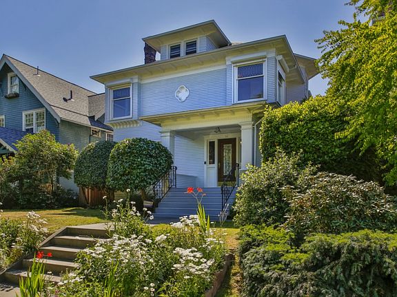 Charming craftsman home with wonderful charm throughout and the improvements you hope for. Refinished hard and softwood floors, original woodwork, pocket and french doors, leaded glass, spacious entry, two gas fireplaces, family room off kitchen, 4 bedrooms up with master suite, finished attic with 3/4 bath, family room and studio space. Large basement, detached garage, decks and great yard. Efficient furnace, updated plumbing & electrical. Fabulous location, one block to Volunteer Park!