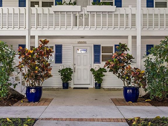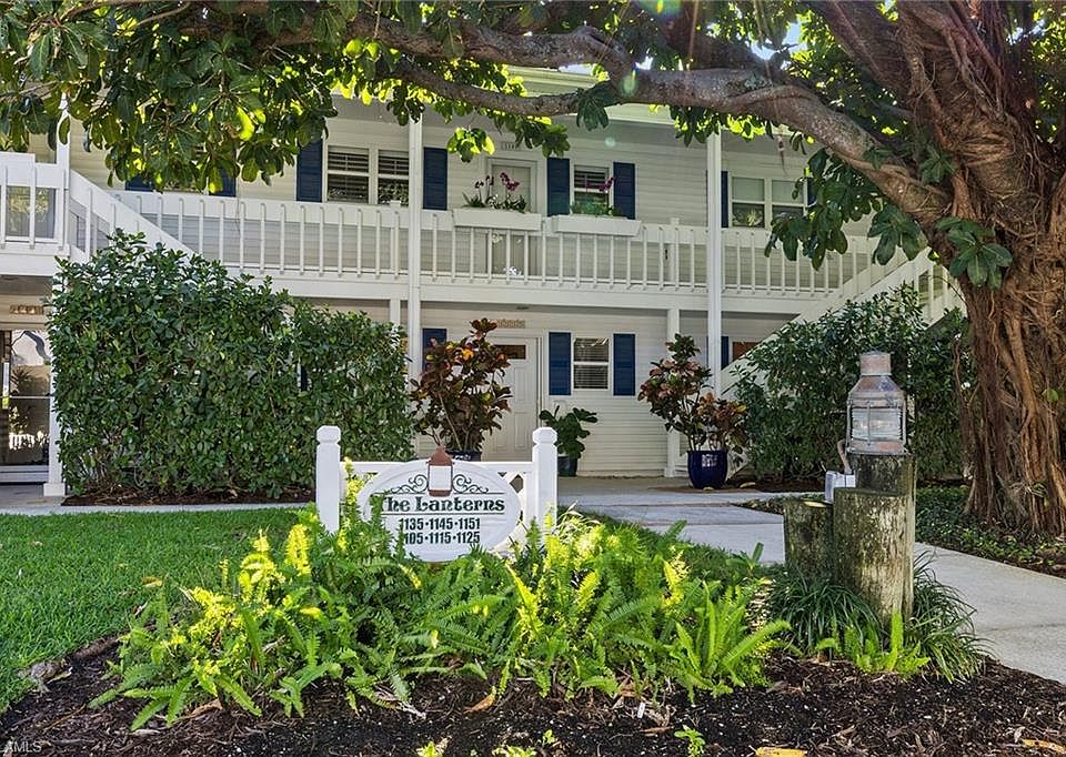 A rare opportunity awaits at The Lanterns, a charming Old Florida-style residence just three blocks from the beach and steps from 3rd Street South and 5th Avenue South. These sought-after homes seldom come to market, offering an exclusive chance to own in a meticulously maintained, low-density enclave. This first-floor residence in a six-unit building features three bedrooms plus a bonus room, ideal for storage or a workshop. Sold fully furnished, including workshop tools and four bicycles for an easy ride to the beach, this move-in-ready, turnkey home provides ample storage with numerous oversized closets and a convenient in-home washer and dryer. Custom woodwork accents enhance the interiors, with crown molding and detailed headboard walls adding warmth and character. The property is surrounded by lush, mature landscaping, with ongoing enhancements planned to elevate its serene, garden-like setting. The parking lot is set for an upcoming refresh, ensuring a seamless arrival experience. Notably, this residence has sustained no flood damage from any storms, offering peace of mind in a prime coastal location. A legacy property, this residence is an exceptional offering in the heart of Naples' historic district, a short stroll to world-class dining, upscale boutiques and pristine gulf beaches.