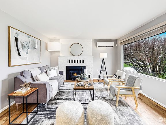 A charming bungalow in downtown Puyallup! This 3 bedroom, 1 bathroom lives larger with a private primary bedroom and two generously sized guest bedrooms. Large windows provide an abundance of natural light and views of the large lush lot the home is set on. Gleaming original hardwoods, a picture window and a wood burning fireplace prove how cozy this home truly is. Enjoy being walking distance to; downtown Puyallup's restaurants and boutique shops, the Sounder commuter train and garage, and Sam Peach Park. Your summer plans will revolve around the Farmers Market and splash pad! Maybe start your own garden in your oversized, fully fenced backyard.