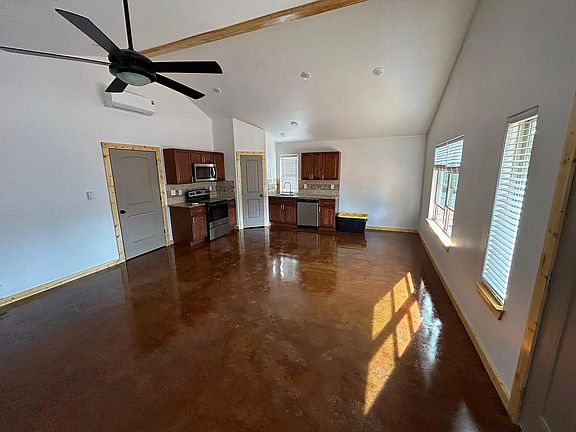 Ceiling, LED LIGHTING, energy bills are excepted to be below $90. Every month. High vaulted ceiling in living room, kitchen and bed room. Mini split in livingroom/kitchen and bedroom. Private back porch with no one behind you, large lot. Enjoy peace, quite