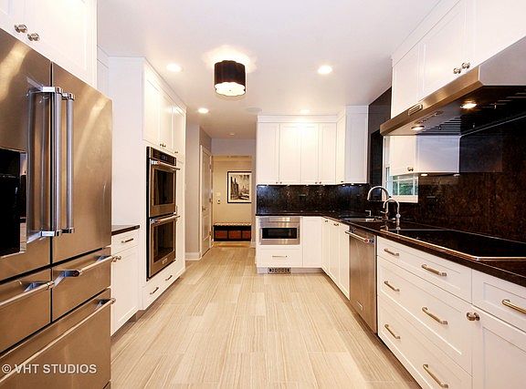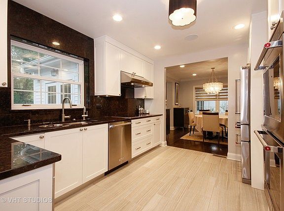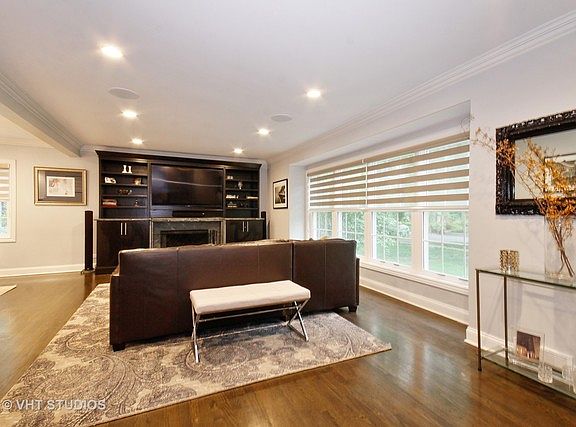 Prepare to fall in love with this stunning renovation done by integrating contemporary design & luxurious finishes throughout. Formal LR w/ HW flooring/marble FP & full wall built-ins great for TV, stereo. Contemporary white kitchen fully equipped with SS high end appliances, granite splash & countertops & many addl features. FR/sun room addition w/wet bar, built-in TV & cath ceilings! Very classic & techy home w/open floor plan-HW flooring, pretty light fixtures, updated baths, stereo system, nest control, beautiful window treatments & more! A rec room & office/study area finishes the picture. Exterior features a beautiful outdoor deck overlooking grounds. Pella windows, doors, maintenance free Hardie/brick/aluminimum exterior, rewired electric. In town location near shopping, restaurants, Western Ave school & library. Roll out of bed and still make the train-just minutes away.