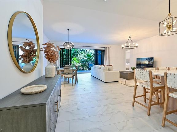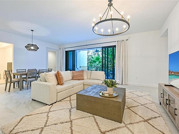 Available April 2026 - Outstanding location in the heart of Naples, walking distance to 5th Avenue S. and the beach! Stunning turnkey, second floor 2 bedrooms + Den, 2.5 bathroom condominium with 2 garaged parking spaces. Tastefully decorated in soothing modern tones and fabulous split bedroom floor plan with a private open balcony, laundry in residence. You'll love the well-appointed kitchen, tile flooring throughout and the abundance of natural light. Luxurious amenities include a 3,200 sq ft resort-style pool with beach entry and 2- 90' lap lanes, chaise lounges, hammock lawns, poolside cabanas and bar, two hot tubs, bocce courts, putting green, grilling areas and fire pits with sitting area, game and billards room, theater, club room, arcade game room and fantastic fitness center. Private shuttle service to the beach and evening service to downtown Naples. Small dog under 30 lbs welcome!