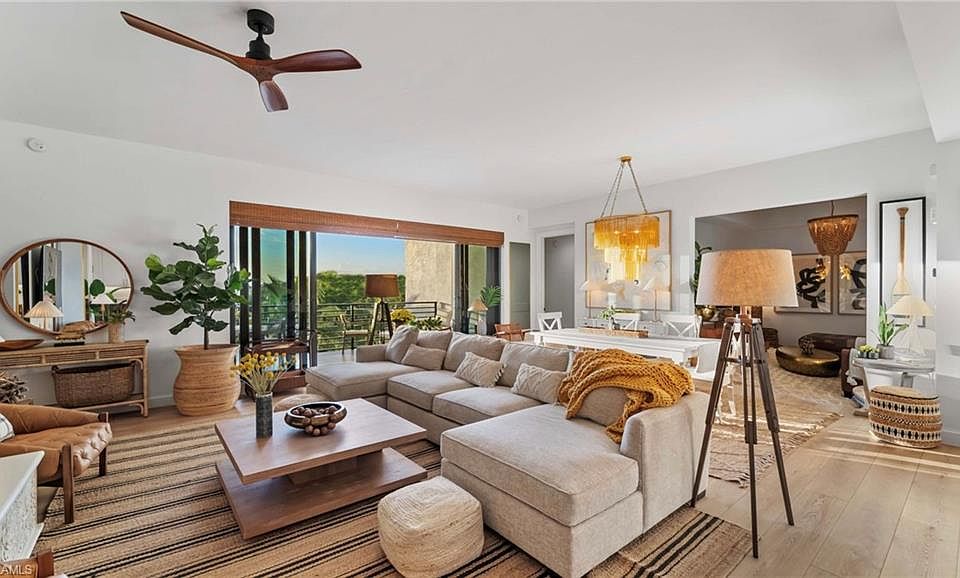 Welcome to Eleven Eleven Central, a premier community in the heart of Naples, FL just moments away from the renowned dining, shopping, & cultural experiences this vibrant city has to offer. This stunning turnkey condo offers a perfect blend of modern elegance & coastal charm designer selected from the top designer magazines. As you step inside, you'll be greeted by a spacious open floor plan (10ft ceilings throughout) that is bathed in natural light. The living area flows into the kitchen featuring top-of-the-line stainless steel appliances, sleek quartz countertops, & an island (upgraded 3" thick). The master suite is a true retreat, complete with a walk-in closet & an en-suite bathroom featuring dual vanities, a soaking tub, & a separate walk-in shower. Step out onto your private balcony, where you can soak in the Florida sunshine & enjoy views of spectacular sunsets & lush landscaping that frames unparalleled private sunsets. This unit comes upgraded with 2 parking spaces & temperature controlled storage in the garage. Eleven Eleven Central offers residents a wealth of amenities, including a stunning pool & spa, fitness center, beach shuttle, suites for visiting guests, & more.