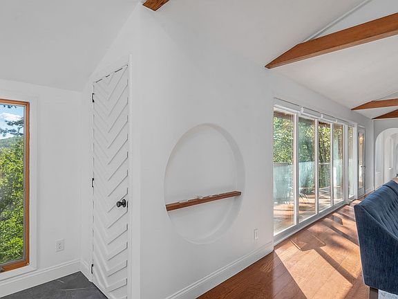 Delightful, contemporary style home nestled near the top of a forested ridgeline offers spectacular views to the south/sw which will leave you speechless! Professional/quality craftsmanship has been used in remodeling. Custom 8 ft. doors greet you and vaulted ceilings in the entry, living room and kitchen feature exposed wood beams. Engineered hardwood and led lighting throughout most of the home. Kitchen features solid, Havea butcher block counters, Fireclay farmhouse sink, Stylish cabinetry and hardware, gas range w/ Visanni hood, counter depth refrigerator and open shelving make meal preparation a pleasure. The bath features a rainfall shower and gorgeous surround. Unfinished bonus rm. could be office/library/storage. Acreage provides endless hiking adventure, 2 wet weather streams, deer proof garden, raised beds, new chicken coop, small grass yard and nice driveway. On paved road, 5 min. to Eureka, 15 min to Berryville, 1 hr to airport, Fayetteville/Rogers/Branson. Being Sold "AS IS, WHERE IS."