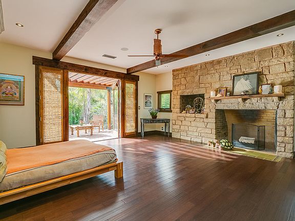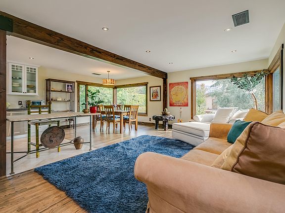 With a bright, Zen-inspired interior, this ¼ acre sanctuary feels like an oasis for the soul. Rich, organic materials include travertine, oak & bamboo flooring. Extensive renovations include new open concept kitchen, new windows & French doors, HVAC, plumbing, new exterior siding, Tesla Solar panels & Powerwall for ultimate efficiency! Beams were added for both warm aesthetic & functional reinforcement, Master Suite was expanded to include a spa-like bath with new steam shower & Toto toilet. Huge family room w/fireplace. Transformative new landscaping includes rock walls, Palm trees & 30 ft. timber bamboo hedge gracing the tranquil & private backyard complete with saltwater pool & spa, an outdoor garden shower & Japanese Tea House. The detached garage was transformed into 400 sq. ft. flex space optimal for yoga studio or artist's retreat completing this extraordinary Shangri-la where the charms of its' mid-century architecture were soulfully blended with a Craftsman style aesthetic. This home is truly special!!