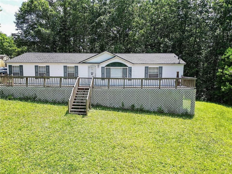 3.48 Acres with a well taken care of Double wide Mobile Home with vinyl siding. This 3 bedroom and 2 full bath home is quiet and peaceful. Huge kitchen with lots of cabinets. Dining room with view to great room with fireplace. Split bedroom plan. Large master bedroom with walk in closet. Master bath with double vanity, garden tub and separate shower. Secondary bedrooms are large. Huge front deck overlooking the private front yard. Three outbuildings for storage and one huge building could be used for chickens. You have long driveway that is gated at the road. You can not see the house from the road. Brand new roof. This a must see.Property has permanent foundation. Zoned AG