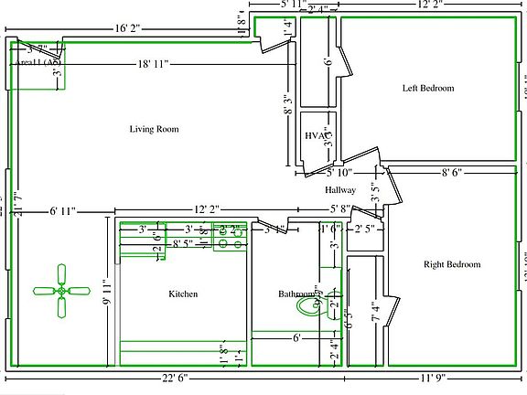 - Total interior livable area: 850 sqft