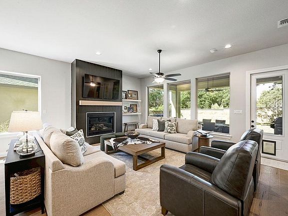 BETTER THAN NEW! This luxury appointed 3 bed + an office, 2.5 bath home is located in the Cottages at Parmer Ranch. This charming LOCK & LEAVE home offers a year round lawn maintenance program and a secure gated entry. So many upgrades - beautiful hardwood flooring, gas cooktop, quartz countertops, heavy iron front door, fireplace, oversized back covered porch with stained ceiling and a fan, plantation shutters and UV film on the windows, built in desk upstairs, soft close cabinets, ceiling fans in every bedroom and high ceilings. The primary bed/bath is a true retreat with extensive tile work, free standing tub, mirrors to the ceiling and a skylight. The kitchen is right on trend with cabinets to the ceiling with glass fronts, a decorative vent hood and large island in a contrasting wood finish. This one shows like a model home - you must see it to appreciate the beauty and convenience of the maintenance free lifestyle this home offers. The location is also another huge benefit of this home with a new HEB about a mile away, easy access to schools and Hwy183 and Hwy 195. The Parmer Ranch neighborhood offers a plethora of amenities including pickleball courts, a well appointed gym with Peloton bikes, TRX, and much more, sport court, parks and playgrounds, walking trails, a community center and gorgeous pool. They also have activities and mobile coffee truck. The HOA fee covers all of the amenities and the lawn maintenance (mulch, some planting, fertilizing and weekly mowing/edging/blowing). Owner/Agent