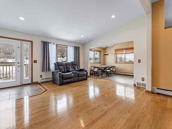 Overlooking one of La Crescent's beautiful parks, this home feels connected to the neighborhood in the best way whether that be morning walks, evening sunsets, or a front-row seat to four seasons of green space. Inside, the main floor is all about easy living: hardwood floors, vaulted ceilings, and a layout that keeps conversations flowing from the kitchen island to the fireplace in the great room. You’ll notice the natural light right away. It finds its way into just about every corner on this level.