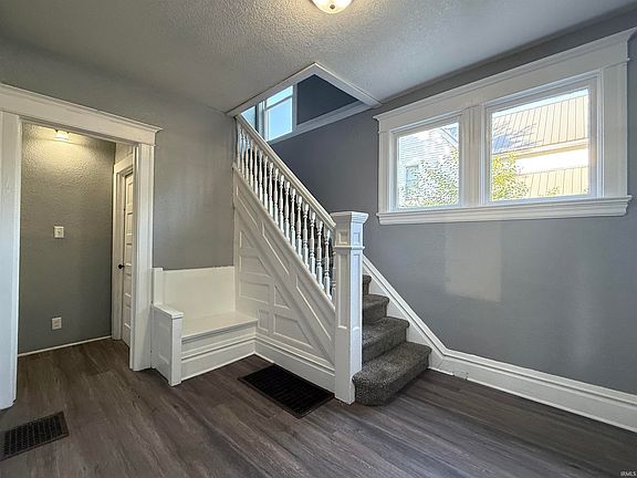 ***As-Is** This is a must-see, beautiful two-story home in downtown Fort Wayne. The large, covered porch welcomes you into a spacious entryway with a charming built-in bench seat and a stately staircase. Charming archways direct you through the grand living room and formal dining room, boasting large windows and a built-in corner cabinet. The main floor offers three-year-old luxury vinyl flooring throughout. The generously sized kitchen boasts a newer refrigerator and gas stove, ample cabinets and countertops, a back door, and features with natural light. Upstairs, you will discover three large bedrooms branching off the open hallway. Each bedroom provides ample closet space and large windows. A walk-in closet is found in the master bedroom. The bathroom offers sufficient space for a dressing area and a spacious linen closet. Off the entry is access to the unfinished basement and side entrance. A washer and dryer are provided. The roof and chimney were inspected and repaired by Graber Roofing in September 2025. Off-street parking is available in the shared driveway. The small yard is ideal for those who prefer low-maintenance care.
