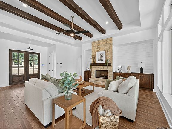 MOTIVATED SELLERS!!! This lovely Farmhouse Retreat on 1.5+ Acres is perfect for enjoying quiet Hill country living yet still minutes to city amenities. Also... No HOA! This home has 5-bedrooms and features two guest quarters, perfect for a mother-in-law suite or multi-generational living. Located on a beautifully flat cul-de-sac lot, this property offers both privacy and convenience. It's close to the city yet tucked away in a peaceful Hill Country setting. Enjoy the gorgeous pool with 600 sqft pool/guest house for summer entertainment, an electric gate for added security, and plenty of space to relax. With no HOA restrictions, you'll have the freedom to make this property your own. This is Hill Country living at its finest. Additional square footage was added to property that is not reflected on listing. TV'S AND MEDIA ROOM FURNITURE CONVEY***DOLL HOUSE DOES NOT CONEY AND ONE STORAGE BUILDING DOES NOT CONVEY