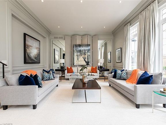 Spectacular custom home in affluent South East Oakville. This masterpiece show home boasts over 6900sqf of total living space, built by PCM, architectural designed by Gus Ricci and interior designed by Brian Gluckstein. No details missed with Luxurious finishes, & exceptional workmanship thru out this architectually detailed timeless home. Sun filled Living/Dining,2 storey office & family O/L private courtyard. Stunning kitchen w/prof grade Jenn-Air appliances, quartzite counters, walk-thru pantry & Overlooking the inground pool. Upstairs the master retreat features spa-like 5pc ensuite & 2 W/Is. Three more good sized bedrooms all with ensuites and a upstairs den perfect for family reading. The lower level features den, 5th bedroom and a theater room. Outdoor paradise with inground pool and private courtyard perfect for entertaining. This magnificent 5yr home fts,10ft ceilings on Main & 2nd floors,9ft in bsmt, herringbone style light oak flooring, custom cabinetry, crown moulding & multiple french doors leading to private courtyard & amazing layout. Excellent location, close to all amenities & top rated schools.