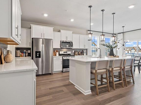 Large modern islandSpacious first floorStainless steel appliancesQuartz countertopsSpacious upstairs laundryHerringbone backsplashMassive walk in pantry
