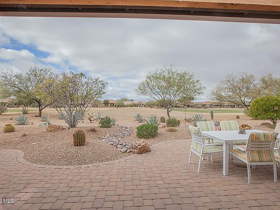 GOLF COURSE LOT with MOUNTAIN VIEWS! The very definition of SPECIAL, you'll love spending time entertaining on the patio watching the sun set over the Santa Rita Mountains! Easy care landscaping allows more time to entertain, hit the golf course or a quick game of pickle ball! Resort living at its very best. Impeccably maintained, this light and bright Augusta has wonderful interior finishes including medium toned cabinets with crown molding, solid surface counter tops in kitchen, recessed sink, neutral color tones in paint, tile and carpet. Reverse osmosis and built in cabinets in garage, front retractable screen door. The perfect location for discerning buyers. This property also has a long rental history for a part-time homeowner who wants to offset the costs of home ownership!