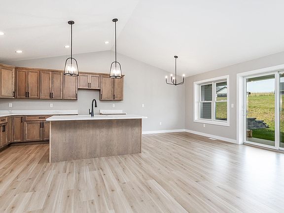 Modern comfort meets small town charm! 2BR, 2BA townhome offering modern finishes and thoughtful design. Open concept living space with vaulted ceilings and durable LVP flooring throughout the main living areas. Stylish kitchen features quartz countertops atop custom birch cabinetry and a spacious island perfect for both entertaining and everyday living! Primary suite offers a luxurious onyx shower and custom designed closet system. The 2nd BR and guest BA provide comfort and flexibility for guests, home office or hobby room. Listing agent has ownership interest. Covered front and back patios offer peaceful outdoor living spaces. The unfinished basement provides endless potential for future expansion of a family room, bedroom or bonus space to match your lifestyle! Schedule your showing today and make this beautiful new townhome yours!