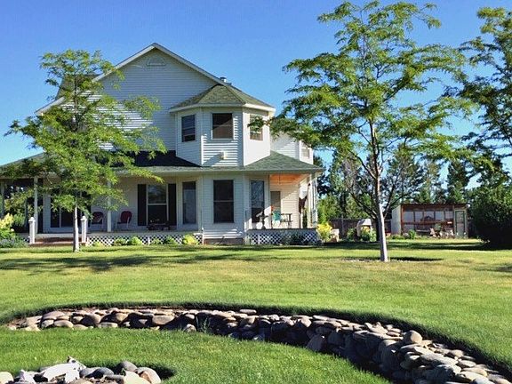 Stunning farmhouse!Clean lines, charm, & wraparound porch. This home has it all, interior updates 2014,Stunning landscape, majestic view of Heart Mt, 4 bed/ 3 full baths, Hard wood and tile flooring, wood stove, attached 2 car garage. Geothermal heating & cooling, auto sprinkler, fenced yard & garden, Pella windows, dog run, fire pit, chicken coop. Home sale contingency, please keep showing!