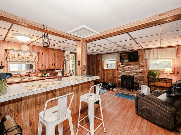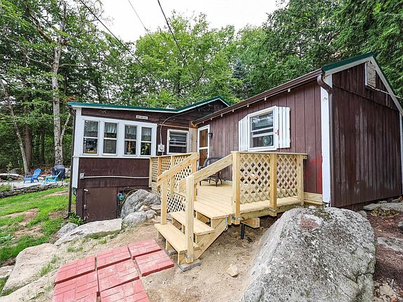 Looking for a cozy little year round home with water frontage? Pleasant Pond is a 198 ac. pond. Sit on your new deck and enjoy the wildlife and the quiet evenings. The 1.6 ac lot consists of 2 tracts of land, the portion the home sits on and the portion across the road with 108 feet of frontage on Pleasant Pond with a private dock. The home consists of an applianced kitchen with pantry and breakfast bar. There is a good size bedroom with 2 closets, full bath, living room with brand new gas heater that resembles a wood stove, and mud room. The 3 season porch provides the perfect space for an office with a view of the pond. Windows are newer, brand NEW metal roof, septic system, deck, washer/dryer combo, generator, gas parlor heater, and a 200 amp panel ready for upgrade. All the major systems are new, all you need to do is make it your own. Abutts conservation land. 2 sheds for storage! Kayak, generator, washer/dryer combo stay. Enjoy skiing, hunting, kayaking, boating, swimming! Crotchet Mt. is nearby. Subject to seller finding suitable housing.