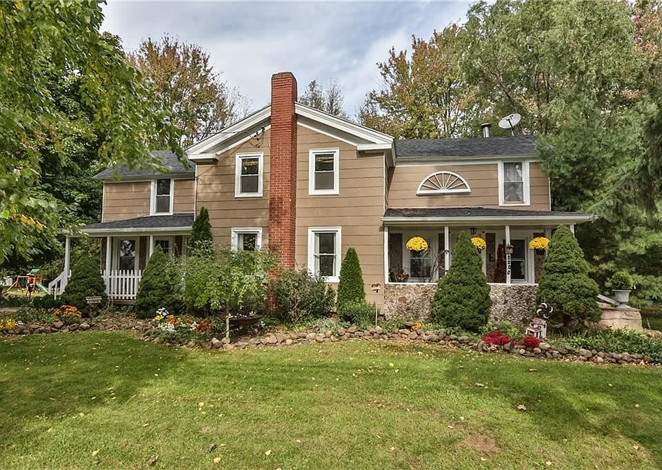 Welcome Home! Beautiful post & beam Farmhouse situated on an over 2 acre wooded parcel with trails! Enjoy the peaceful setting among nature & the lush landscaping on the porches, patio & deck! Greet your guest in the parlor room w/the cozy wood burning stove. The Kitchen features a vaulted ceiling made of hand-hewn barn wood! Generous sized Family Room & Thanksgiving sized Dining Room! 1st floor Master Suite with tiled shower! Large first floor laundry! 2nd floor has 3 bedrooms & there's even a loft/suite area! Endless possibilities: in-law & home office! Updates include: NEW Tear roof (2016), NEWER windows (2015), NEWER bathrooms, exterior & interior painted (2017), NEW deck (2016) Driveway (2015). Your own country-like living conveniently located near Shopping, Parks & Schools!! LOCATION! ACREAGE! FARMHOUSE! CHARM! YOURS!