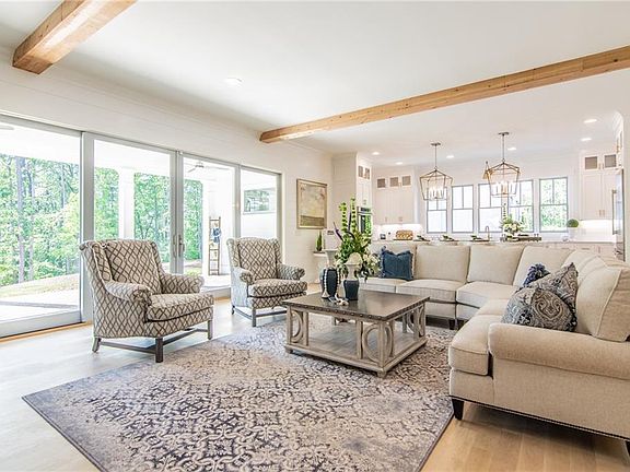 Stunning Chathambilt Home on a beautifully landscaped secluded 2 acre lot just about a mile into Cherokee County from Milton. This Southern Living plan features covered front and back porches with scenic views, spacious master on the main, walkout basement, oversized family foyer off the 3-car garage, detailed interior trim, custom cabinets, premium appliances, front porch fireplace, and premium floor coverings. The backyard has large pool with integrated spa off the main level. The home has a wonderful sense of arrival from Rowe Road up the gated gravel driveway to the elevated private homesite.