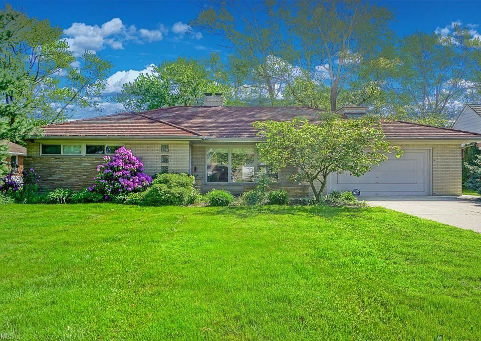 Stylish, stunning brick and stone mid-century ranch located in the historic Forest Hill neighborhood on a quiet, tree-lined street. This home features two bedrooms with one and a half baths on the main floor. The updated eat-in kitchen is bright and airy and looks over the peaceful backyard. Also to enjoy is the three season sun-room that also looks over the backyard and patio. The full basement is complete with carpet, a fun wet bar for entertaining and another full bath for convenience. Lots of built-in storage and closets throughout. Energy efficient home helps provide lower utility costs. Central a/c, attached 2 car garage and wood floors throughout. All appliances included, including high efficiency washer and dryer. Coventry area and Little Italy areas are nearby with restaurants and shopping. Great rental opportunity! Eleven minutes to University Hospitals, University Circle, and 12 minutes to Cleveland Clinic. Available July 1. Must provide credit report and complete an application. No smoking, two year lease minimum.