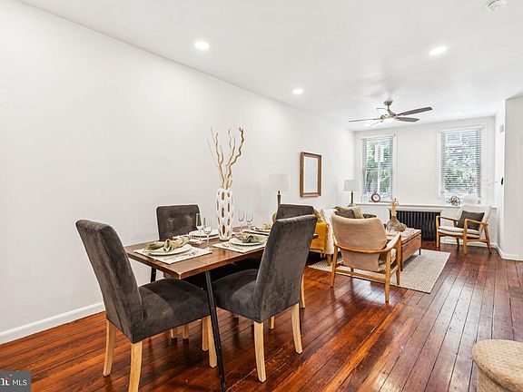 Welcome to 1115 S 7th Street, a beautifully updated 2-bedroom, 1.5-bathroom row home nestled on the edge of East Passyunk. Built in 1918 and thoughtfully renovated in 2019, this 1,056 sq ft home blends classic character with modern upgrades. Once you enter the property through the original vestibule you will find a spacious living and dining area featuring original refinished hardwood floors and plaster walls. Past the dining room is the eat-in kitchen with quartz countertops, stainless steel appliances, ceramic floor tiles and a tiled backsplash.The back kitchen window overlooks the back patio, perfect for relaxing or grilling. A convenient powder room off the dining room makes up the first floor. Upstairs you will find two bedrooms featuring custom closets and plenty of natural light. The bathroom features a walk in shower, custom vanity, storage closet and a skylight. Recent updates include all new electrical (2019), new copper water source (2019), new boiler (2023), new roof and bathroom skylight (2023). The home was recently painted from top to bottom and is ready for its new owner(s). The property is located just blocks from the Italian Market and a short walk to Center City and East Passyunk’s shops and restaurants. This home offers a unique blend of retro charm and contemporary comfort in one of Philly’s most sought-after neighborhoods. Ready to make it yours, schedule your preview today!!