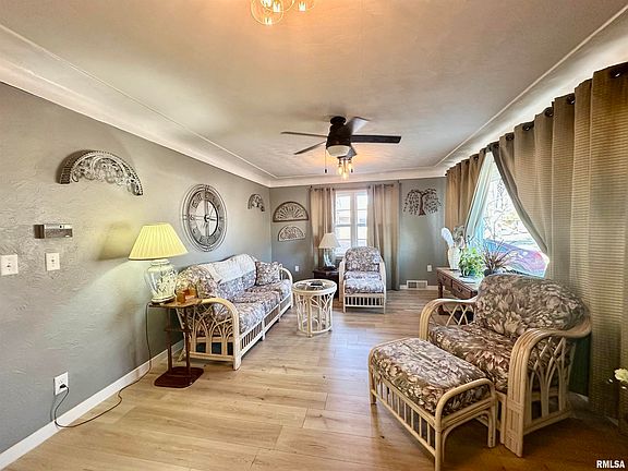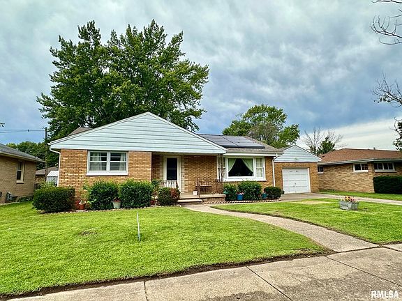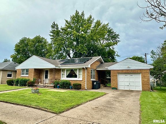 "Home Sweet Home" awaits you in this move-in ready, brick ranch in the heart of Pekin. This home offers 2bdrm, 2bath. Large living room with built in hutch and new picture window in 2024. Eat-in kitchen allows plenty of cabinet space, microwave, range/oven and refrigerator; also offers laundry hook-ups if desired on the main level. Main level liv rm, both bdrms and hall have newer luxury vinyl plank flooring. Full basement offers spacious Family/Rec Rm and Dry Bar area, all great for entertaining; laundry, bath and workshop rm with heavy wood work table with drawers great for storage. Open covered breezeway allows you access from home to attached garage. Large yard with patio and shed. Updated electrical panel in 2024. Take advantage of the lower electric bills with the new "Sunrun Solar Electricity System" installed in 2024. Monthly electric leased program at $65 provides for a very low affordable electric bill. See lease agreement in scanned documents.