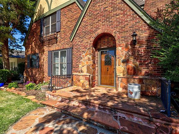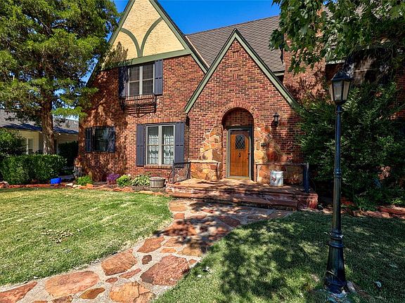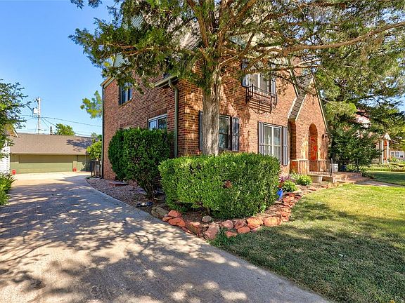 This 1929 historic home is a jewel! Step inside and the historic details will WOW you! Glass doorknobs, many original light fixtures, two 1930's hand painted murals signed by artist, beautiful woodwork, and amazing craftsmanship. Enjoy the light and airy feel of this house with large rooms and large windows throughout. Living room and formal dining room have newly refinished wood floors, and bonus area off the living room has new can lights. Kitchen has a Bosch dishwasher, pantry, gas range and opens to a cute, sunny breakfast room. Relax in the upstairs, large primary suite with two walk in closets(one is a cedar closet), private sunroom/office, and ensuite full bathroom. Two large guests bedrooms with walk in closets and a full bathroom are also upstairs. The basement is not counted in square footage but it is a very nice space that provides an additional bonus room with gas fireplace, new can lights, and refinished walls; as well as a large laundry room with tons of extra storage space that could be used as a hobby room or office. So many possibilities with this extra space! Head outside to the gorgeous backyard with mature trees and landscaping. The large back porch is the perfect spot to enjoy the shade and peaceful setting. This house makes entertaining easy both inside and outside. Located close to downtown El Reno shops, coffee, and restaurants! Come see this one today!