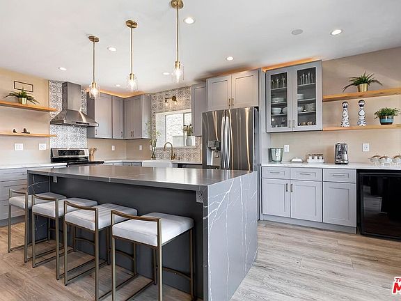 This beautifully renovated condominium with incredible views underwent a comprehensive, high-end remodel completed in August 2023. Every element was thoughtfully selected to enhance comfort, functionality, and modern appeal throughout the home. In an amenity-filled building, features a rarity for the complex... in-unit laundry! Enjoy the tasteful details of the Living Room, Eat-in-Kitchen with wine/coffee bar and enjoy the views of the beautiful city and Hollywood Sign from your expansive kitchen island or the patio. Both bathrooms, the hall bath and the Primary, have been remodeled, including the brand new soaking tub with glass door and waterfall shower head. Primary suite also includes an impressive walk-in-closet. Sought after building includes a list of impressive amenities, including year-round heated pool and spa, fitness room with sauna, recreation room and external storage for unit and provides Earthquake Insurance. Across the street from Beverly Hills and a block from Beverly Drive provides an easy access to restaurants, cafes, grocery stores and commuter routes. Don't miss out!