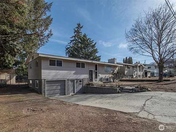 Instant Equity! Home appraised for more than list price. Enjoy amazing views of Saddlerock in this spacious 5 bedroom home; Located close to Wenatchee Schools, the hospital and recreation. Classic split level home features an updated kitchen with eating bar, primary w/ attached bath, 2 more bedrooms, second bath and living room with wood burning fireplace on main level. 2 more bedrooms with non-egress windows, family room with fireplace and 3/4 bath down. Unfinished space downstairs & exterior entrance gives you area for additional living space. RV/boat parking and access to backyard with possibility to add an ADU. Fenced backyard with two storage buildings, covered deck off main level. Professionally pre-inspected.