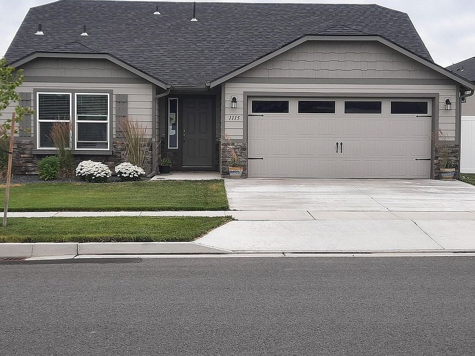 MASTER BEDROOM: Two walk in closets, double vanity at countertop level, separate WC, walk in shower, elongated toilet. LAUNDRY: Wall cabinets GARAGE: Extra Long, insulated and dry wall, electric garage door, man door, extra outlet for freezer or ? LAWN: Full sprinkler system, fenced, edging, covered and lighted patio. DEN/Bedroom: French doors, closet KITCHEN: Self-closing cabinetry with handles, quartz counter top and bar, stainless steel sink, garbage disposal, stainless steel DW, range, and microwave, laminate floor, HEATING/COOLING: Natural gas high efficiency furnace, Electric 40-gallon hot water tank, air conditioning, living room ceiling fan, fireplace with fan