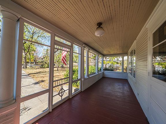 Large yardHardwood floorsScreened porchCherry built-insCity block deep lotBold woodworkStained glass accents