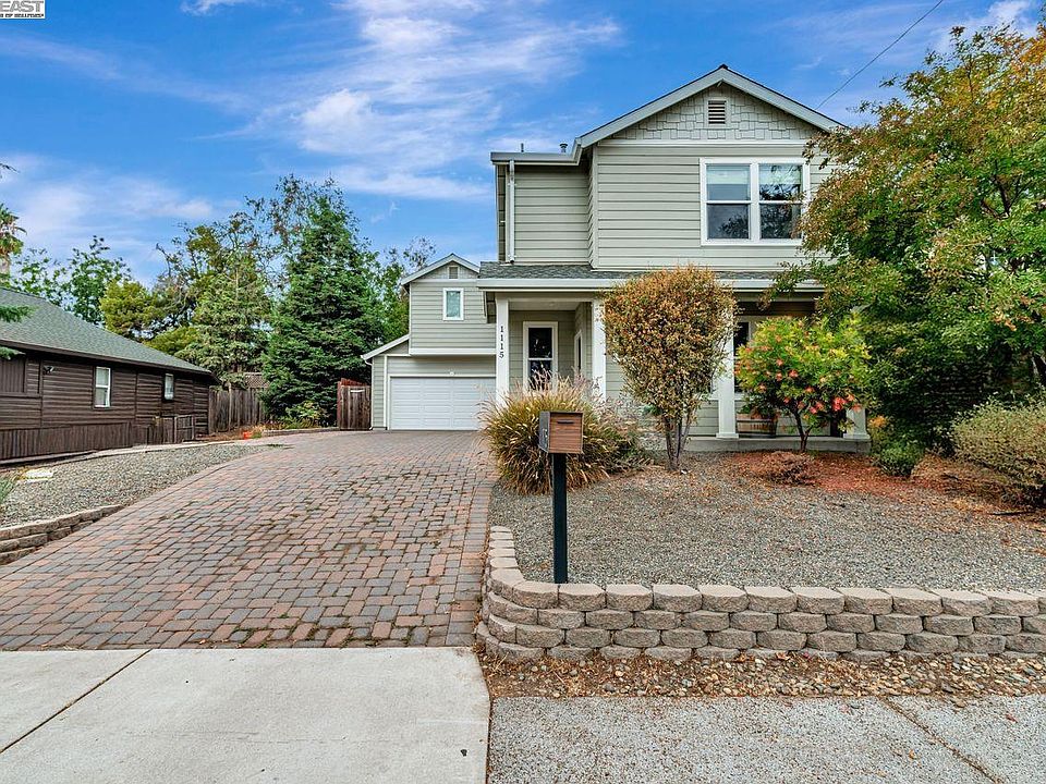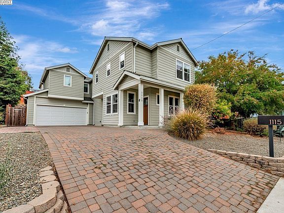This charming 4 bed, 3 bath home is just under 2,000 square feet, ideally situated near historic downtown Martinez. Built in 2014, this two-story craftsman-style home boasts crown molding, hardwood floors, natural lighting throughout, and modern amenities including an updated kitchen, stainless steel appliances, quartz countertops, a nest central air thermostat system, and a tankless water heater. The first floor features a spacious media room, dining area, custom bar, and modern kitchen with an eat-in bar that seamlessly flows into the family room, creating an ideal space for entertaining. All bedrooms, including the primary suite, and office nook are located on the second story, as well as the spacious laundry room, providing privacy and comfort. Additional highlights include a walk-in pantry near the kitchen, a spacious garage featuring built-in cabinets, work benches, epoxy flooring, and ample storage. The low maintenance yard has built-in shades, a fire pit, a dog run, and ample space for dining alfresco! This home combines contemporary convenience with a prime location, making it an ideal fit for modern living with no HOA dues!