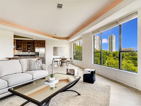 The unique and beautiful developer's penthouse unit in the Gardens at West 7th, a lovely small condo building in the heart of Old West Austin. Completely renovated to perfection. Features include large windows with stunning views that look West and Downtown, cut limestone fireplace, new durable floors, high ceilings, 2 private balconies, kitchen that opens to the living/dining, generous master bedroom, 3rd bedroom can be used as office, two premium parking spots in the garage and a large storage closet just outside the unit. Near the elevator and cluster mailbox on your own top floor, this condo has a premium location within the complex. Located in desirable Old West Austin just minutes away from Whole Foods, Clark's Oyster Bar, Lin Asian Bar, Jeffreys and Josephine House, Swedish Hill Deli and much more.