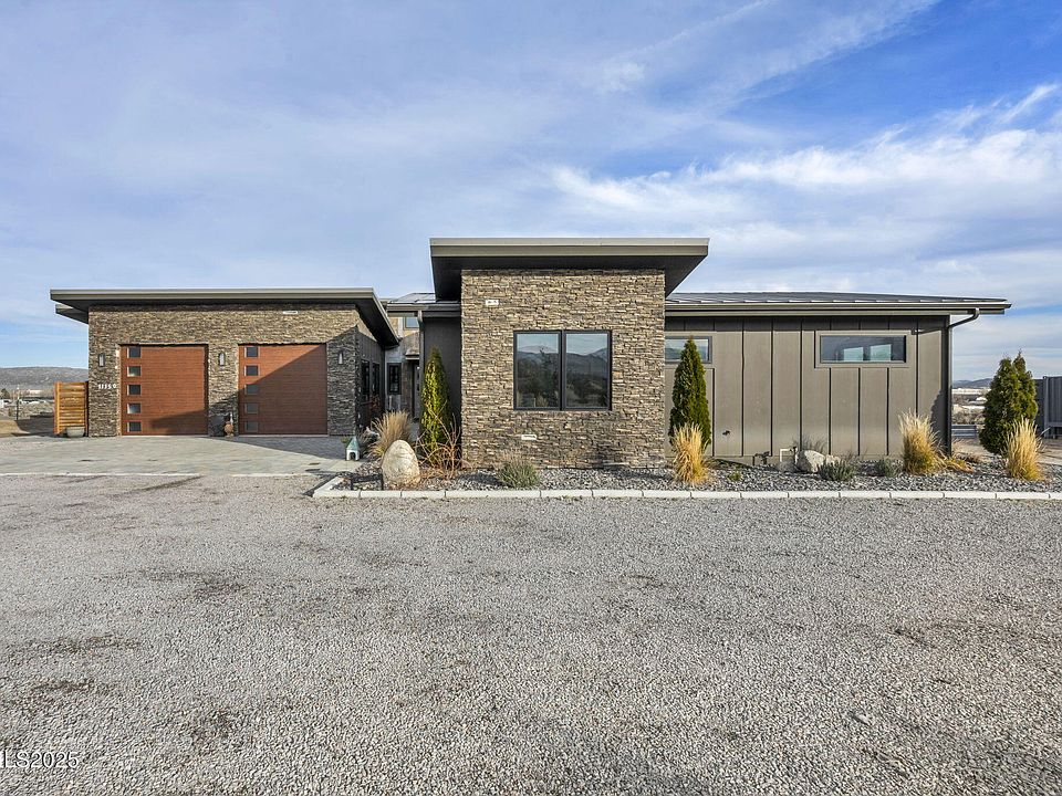 Rare Find in Silver Knolls! This custom Mountain Modern Farmhouse sits on a full acre with unobstructed 360° views of the surrounding mountains, valley, and desert—truly a one-of-a-kind setting in an established neighborhood. Zoned for horses and no HOA, this property provides the freedom and space you're looking for. The home features an open, light-filled floor plan with soaring ceilings and beautiful high-end finishes throughout. The luxurious primary bathroom boasts a modern wet bath design, combining a soaking tub and shower in the same space, complete with heated floors for spa-like comfort. A fully self-sustained apartment with a separate entrance includes its own bedroom, living room, full kitchen, bathroom, and laundry—ideal for guests, multigenerational living, or rental income (currently rents for 1,800/month). The chef's kitchen is a showstopper, featuring two large islands, rich alder cabinetry, two sinks, built-in refrigerator with wine tower, and a massive butler's pantry perfect for entertaining and storage. The oversized garage (833 sq ft) offers 12' ceilings and extra-large doors—spacious enough to accommodate an RV, boat or even a workshop. Don't miss this rare opportunity to own a stunning, versatile property in a sought-after rural location—minutes from town, but a world apart!